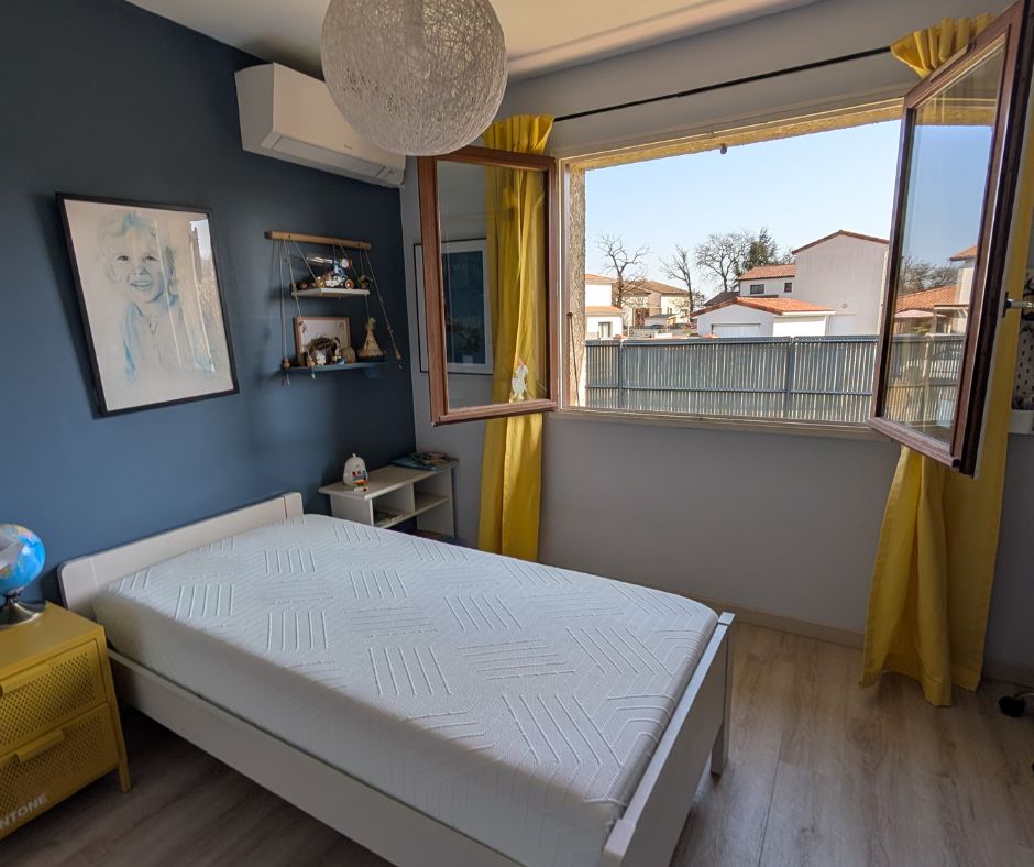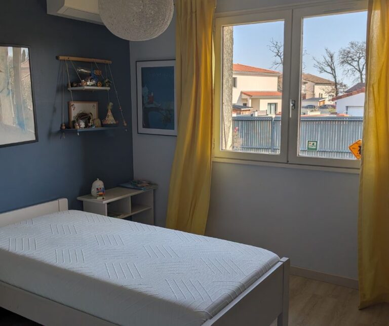 J’ai choisi un matelas hybride 90×190 de la marque Mello. Il est fabriqué en France (très important pour nous), entièrement déhoussable. Ce point était important pour moi : pouvoir retirer la housse et entretenir plus facilement la literie est rassurant quand on gère des allergies.