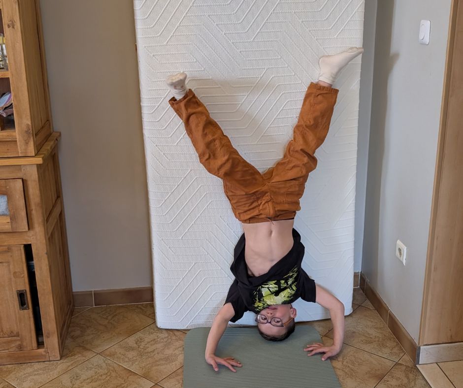 Marius me glisse que le matelas est aussi parfait pour faire des roulades et que je ne peux plus râler quand il veut déplacer le matelas pour faire des ATR comme à l’école car les petites poignées en tissu dessous permettent un transport facile (je suis ravie 😁)