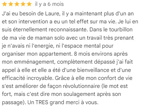 En arrivant chez mes clientes, je ressens souvent leur gêne face à leur bazar. Mais ne t’inquiète pas, je ne juge jamais. Au contraire, je suis là pour t’aider à reprendre le contrôle et simplifier ton quotidien.